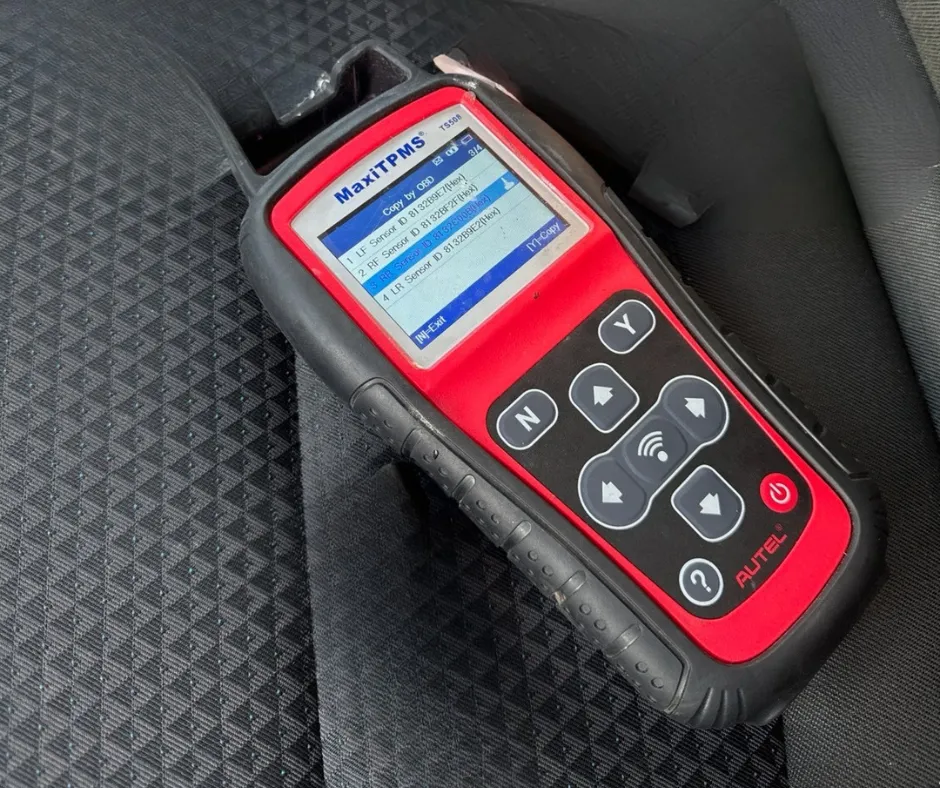 Maintaining the electronic sensors in your tires that alert you to low pressure, ensuring safety and performance by checking, or replacing sensors, seals, and valve components.